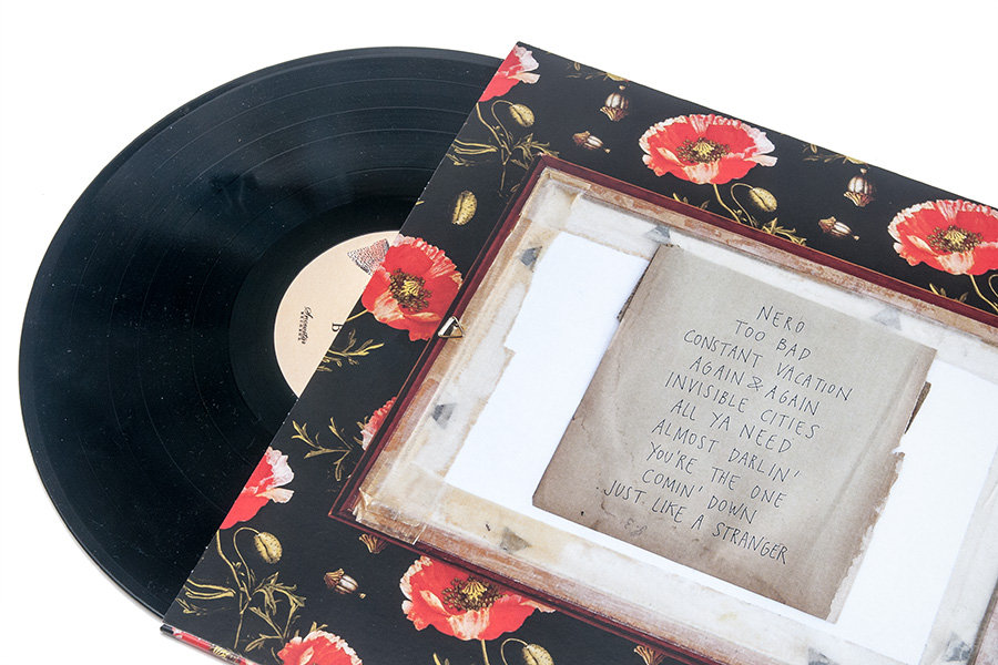The vinyl comes in a full color inner sleeve with the lyrics on one side and your own little house to cut out and burn down on the other.